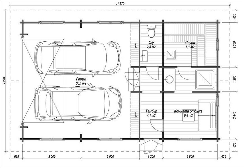 Projek sauna ergonomik dengan garaj di bawah satu bumbung
