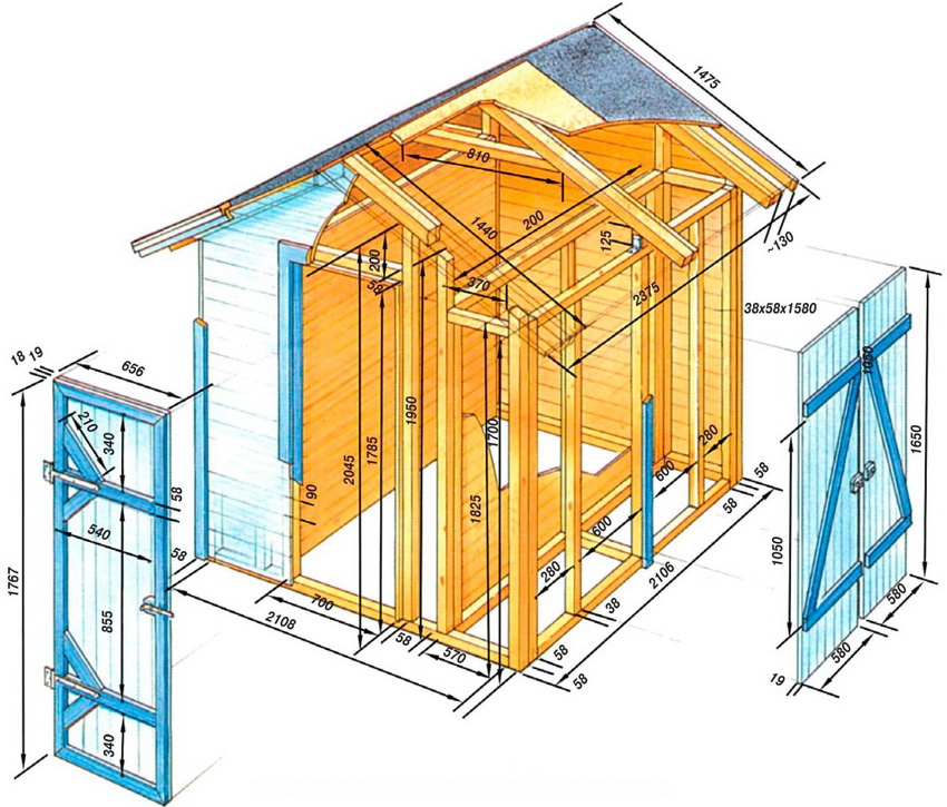 Untuk pembinaan struktur, kayu, logam atau plastik paling kerap digunakan. Kayu adalah bahan mesra alam, dipercayai dan tahan lama. Walau bagaimanapun, untuk melindungi bangunan dari serangga dan reput, papan mesti dirawat dengan impregnasi khas. Struktur plastik ringan dan menjimatkan. Bangunan logam digunakan terutamanya sebagai garaj.
