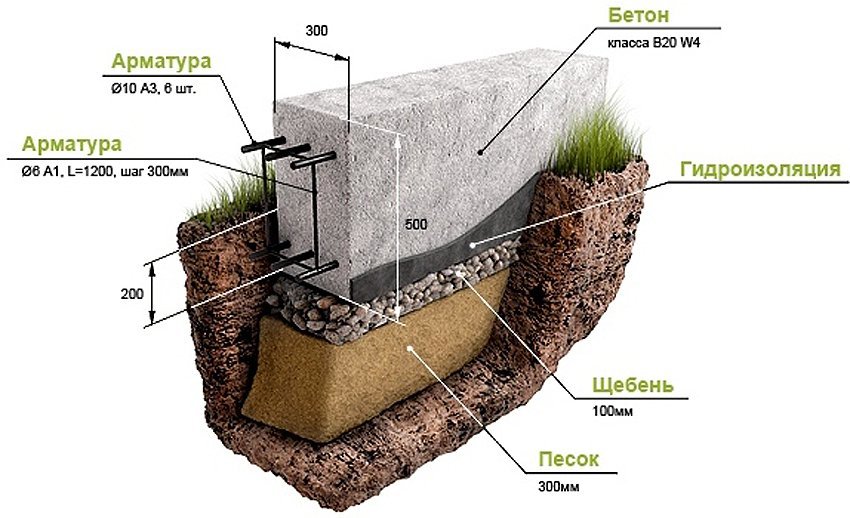 Maklumat berguna! Sebelum mula menuang konkrit, anda perlu meletakkan bantal kerikil yang dicampurkan dengan pasir di bahagian bawah lubang. Batang tetulang hendaklah diletakkan di dalam bahan siap.