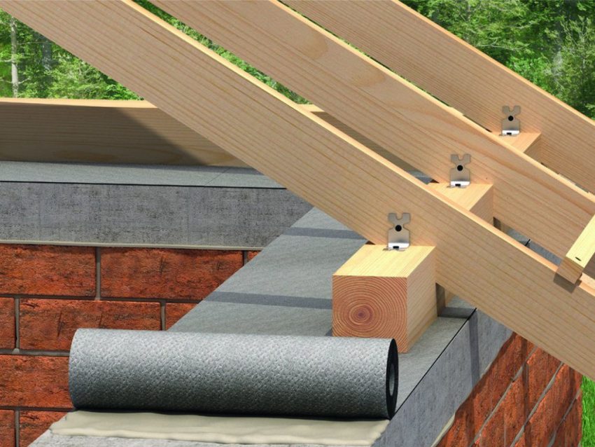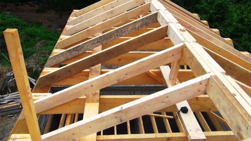 Perkara pertama yang perlu dilakukan ialah meletakkan balok yang akan berfungsi sebagai siling. Seterusnya, anda harus memasang kasau di hadapan struktur. Pada peringkat ini, mereka diikat sementara dengan rak.