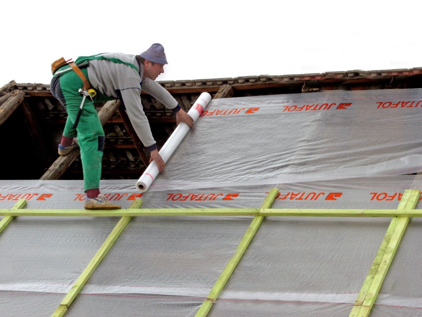 Peringkat seterusnya adalah pemasangan bahan kalis air (over the lathing). Dalam kes ini, bahan bumbung boleh digunakan, yang merupakan lapisan yang berpatutan dan popular. Pilihan kedua yang agak biasa adalah penggunaan filem yang terletak di bawah bumbung.