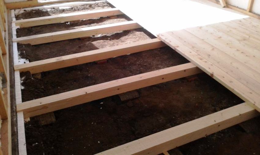 Papak lantai dibuat terakhir.Untuk tujuan ini, papan 40 mm digunakan secara tradisional, yang dipasang pada tali pinggang luar. Kemudian hanya tinggal memasang papan luar - dan lantai sudah siap.