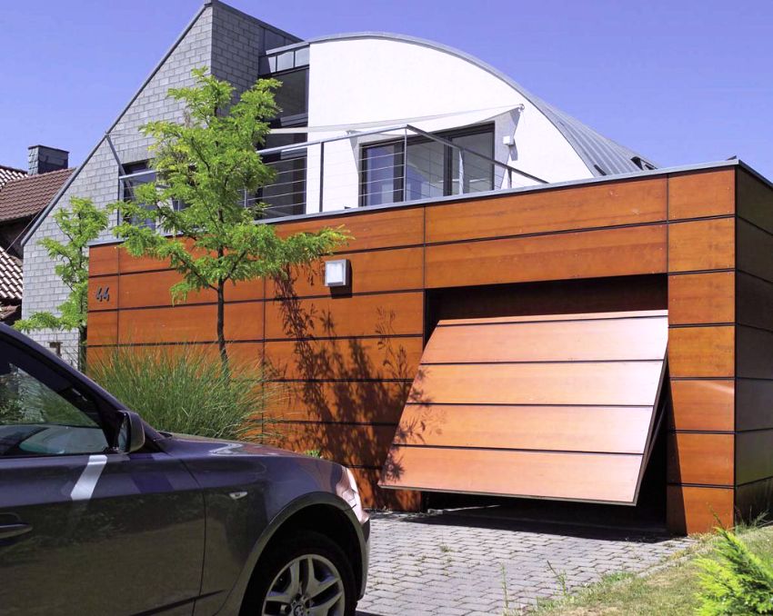 Setiap garaj mesti mempunyai pintu pagar. Reka bentuk ini diperlukan kerana membolehkan kenderaan melewati bangunan. Pilihan klasik untuk garaj domestik adalah pintu gerbang ayunan dua daun. Mereka dibuka secara manual dan, sebagai peraturan, selain dua daun, dilengkapi dengan pintu masuk, yang terletak di salah satu bahagian.