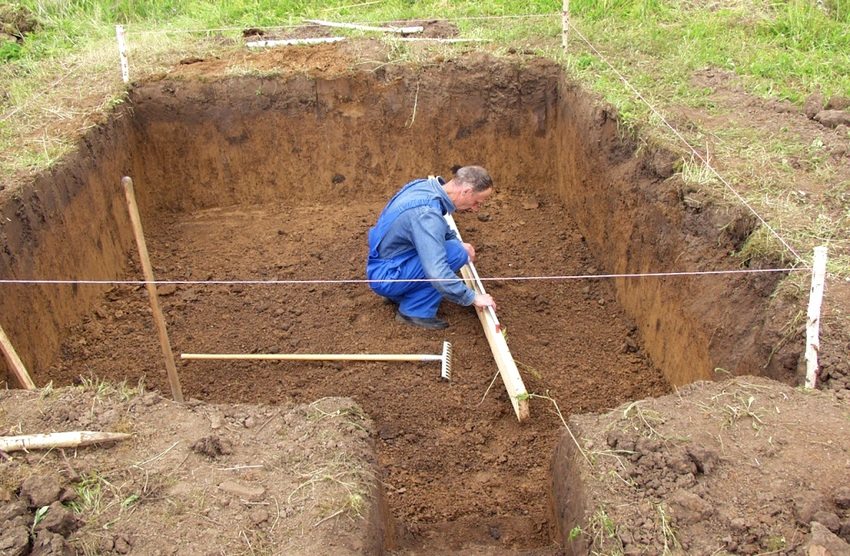 Dimensi bilik bawah tanah hanya bergantung pada keperluan anda, tetapi ingat bahawa ukuran lubang harus 0,5 m lebih besar dari ukuran struktur itu sendiri. Dalam proses bagaimana anda membina bilik bawah tanah dengan tangan anda sendiri, tanah subur yang anda gali dapat diedarkan di pondok musim panas. Kerataan bahagian bawah setelah akhir kerja mesti diukur dengan tahap dan diperbetulkan, jika perlu.
