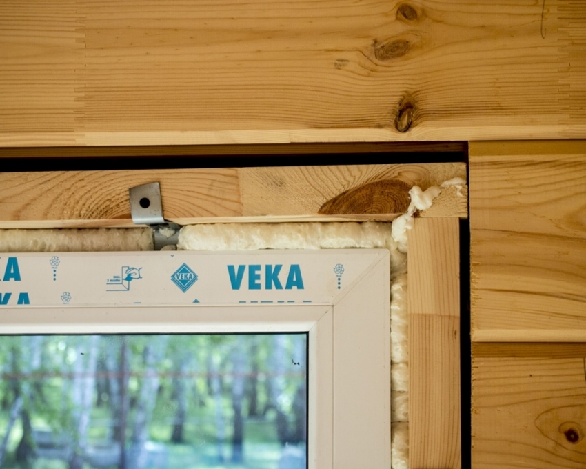 Jurang yang tersisa di bahagian atas dilindungi. Untuk tujuan ini, busa atau tunda poliuretana sangat sesuai. Kemudian anda boleh memasang pintu dan tingkap. Sekiranya tingkap kayu dipilih untuk mandi, ia harus dipasang pada selongsong dengan skru mengetuk sendiri. Sekiranya anda tidak mahu menggerudi kotak, anda boleh mengehadkan penggunaan plat sauh sebagai pengapit tingkap.