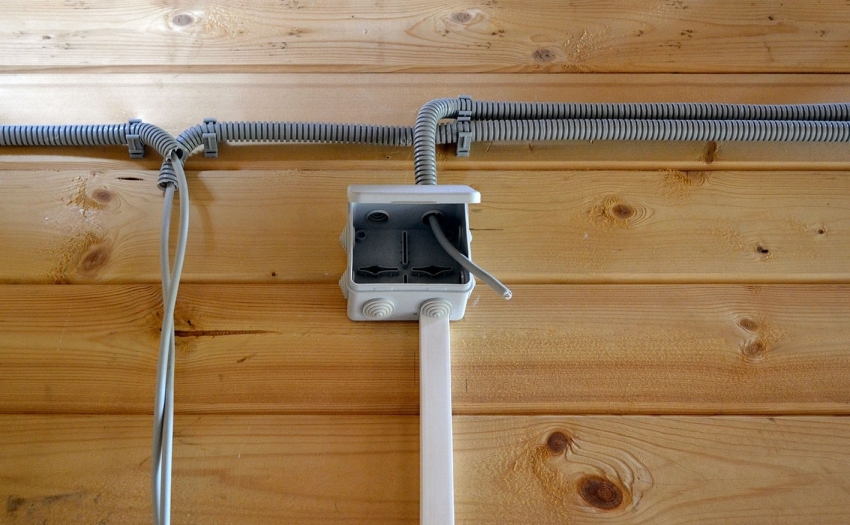 Dianjurkan untuk melakukan pemasangan pendawaian elektrik mengikut skema yang disusun dengan kaedah terbuka. Ia bukan sahaja selamat tetapi juga selesa. Anda boleh menyembunyikan pendawaian di bawah selongsong hanya di bilik wap.