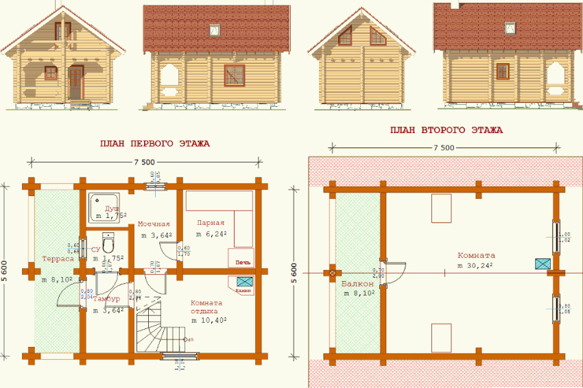 Selalunya, pemilik pondok musim panas menggunakan pembinaan tempat mandi dua tingkat. Walaupun bangunannya agak kecil berukuran 6x6 m atau 6x8 m. Kehadiran tingkat dua akan memungkinkan untuk melengkapkan bilik tambahan yang memberikan keselesaan dalam operasi mandi.