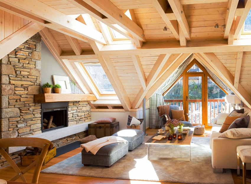 - Papan atau kepingan kayu diletakkan pada balok siling yang dapat menampung berat orang (lapisan ini diperlukan untuk atap, setelah itu tidak ada yang akan bergerak di atas bumbung).