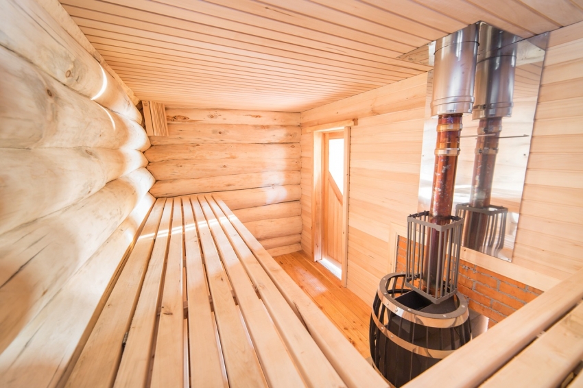 Kompor dipasang sedemikian rupa sehingga sebanyak mungkin bilik dipanaskan. Pengaturan sistem pengudaraan yang betul akan mengelakkan kesan penyumbatan di loteng. Mandi ini juga dilengkapi dengan sistem penghalang wap untuk mencegah pertumbuhan jamur dan kulat. Untuk naik ke lantai loteng, tangga dibina di dalam bangunan dengan tangga yang tidak licin dan pagar yang selamat.