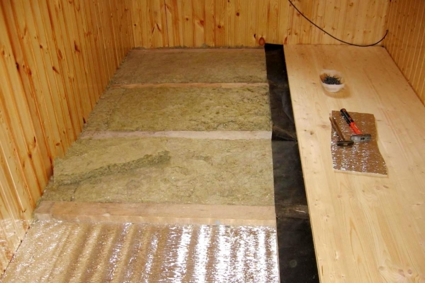 Oleh kerana loteng dicirikan oleh rejim suhu dan kelembapan khas, lantai juga terlindung dari haba dan kelembapan menggunakan bahan filem atau kerajang. Kemudian penebat diletakkan dan lantai siap dipasang. Siling dilapisi dengan lapisan.