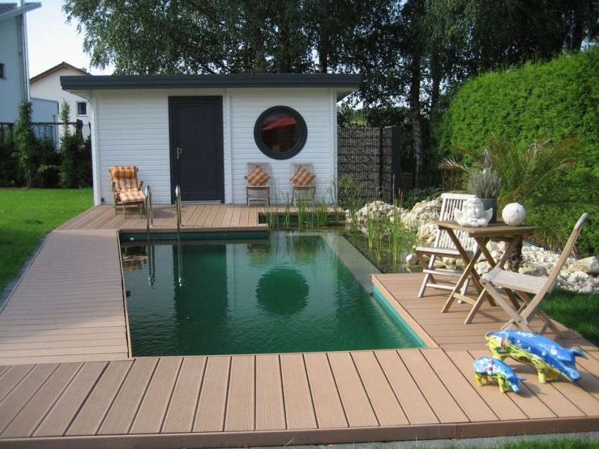 Kelebihan dan gambar mandi dari bar di pondok musim panas mereka
