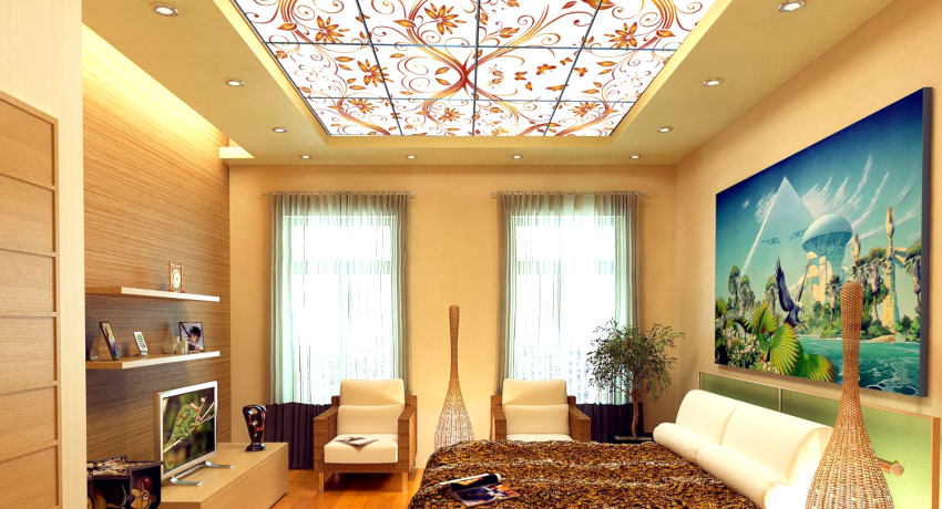 Siling regangan lampu belakang: ciri reka bentuk. Bentuk, warna dan hiasan permukaan. Varieti pembinaan. Peranti lampu siling regangan.