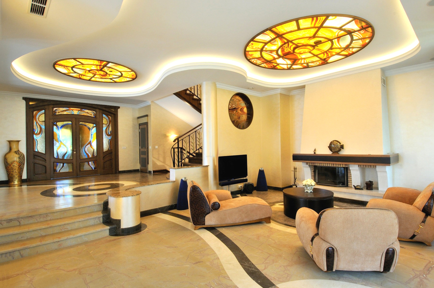 Struktur tegangan berbentuk bulat dua tingkat dalam bentuk elips, bujur atau bulatan akan membantu melicinkan sudut ruang yang tajam. Pencahayaan yang tidak biasa dapat menambahkan kedalaman ke bahagian dalam.