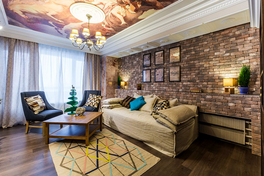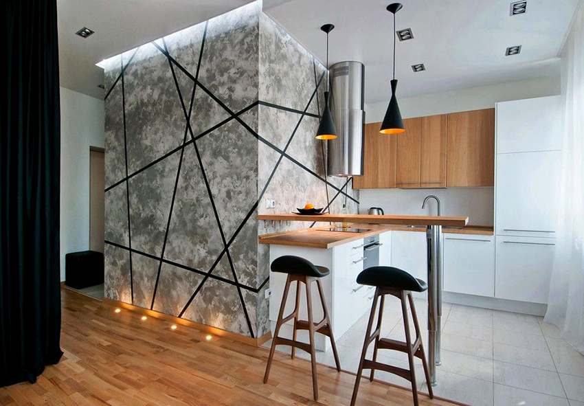 Pembelian lapisan bertekstur dengan pelbagai hiasan, hiasan atau corak membuka banyak kemungkinan reka bentuk. Oleh itu, reka bentuk sedemikian sesuai untuk membuat bahagian dalaman baik di pangsapuri, pondok desa, pejabat, dan di pejabat atau bangunan komersial.