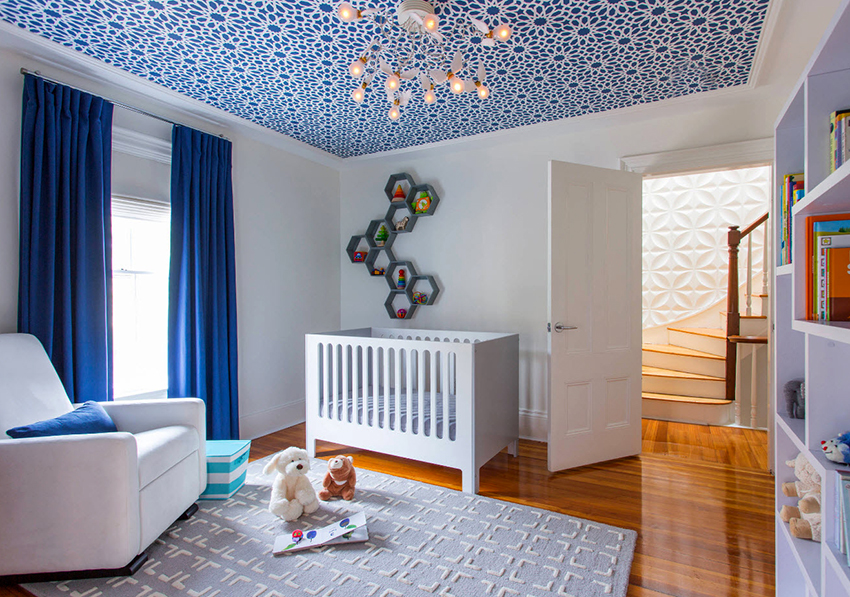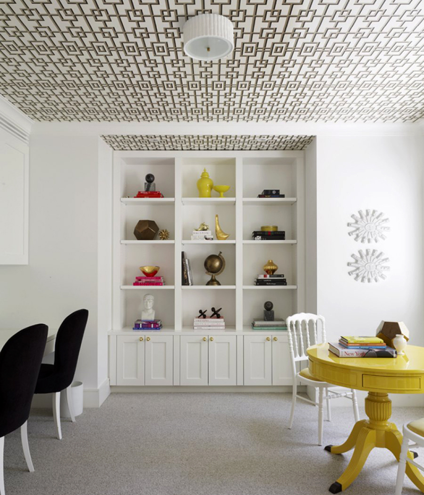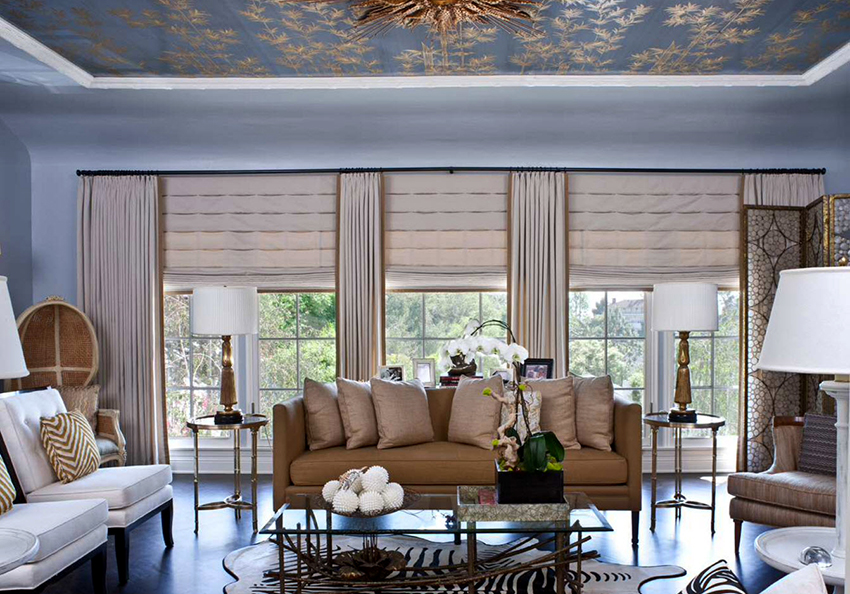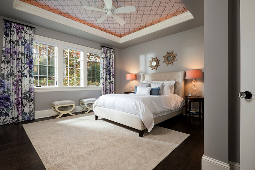 Nasihat berguna! Fabrik Chintz di siling sangat sesuai untuk bilik tidur atau ruang tamu kerana menimbulkan perasaan selesa dan mempunyai warna yang menyenangkan dan menenangkan. Selalunya, kanvas chintz dipasang di lorong, di mana tekstur kasarnya kelihatan sangat sesuai.