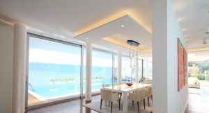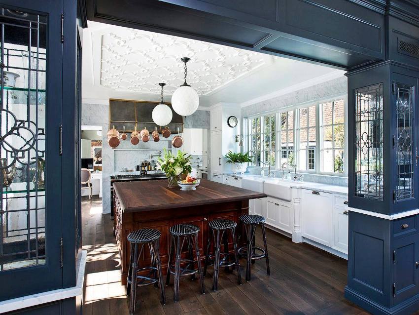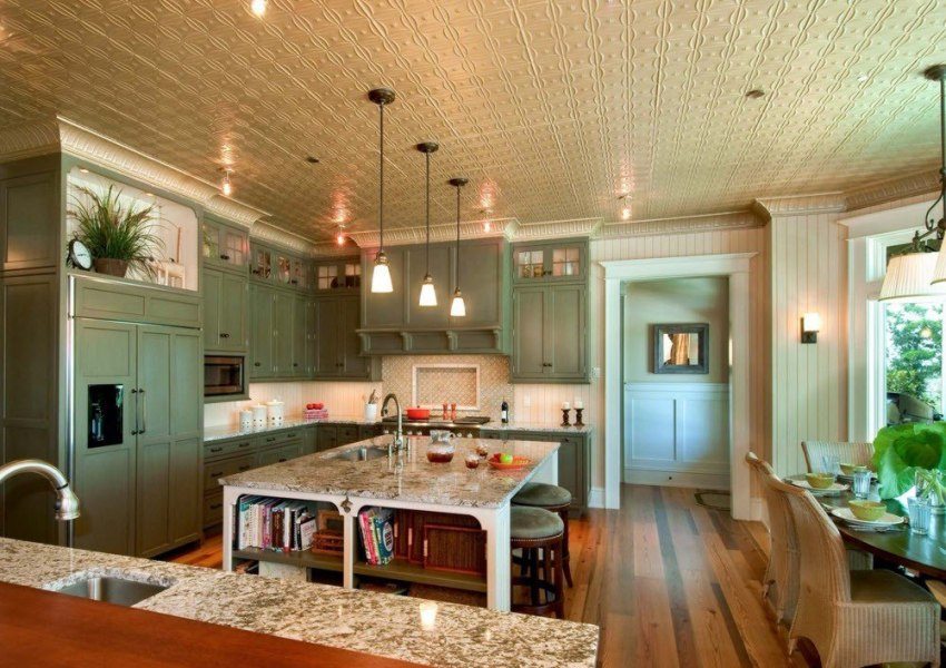 Gabungan dalam hiasan siling di dapur jubin buih dan bahan lain