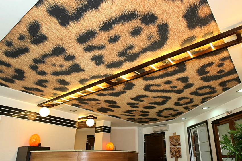 Semasa menghias premis menggunakan idea yang tidak remeh, pereka mengesyorkan memilih siling regangan dengan percetakan foto
