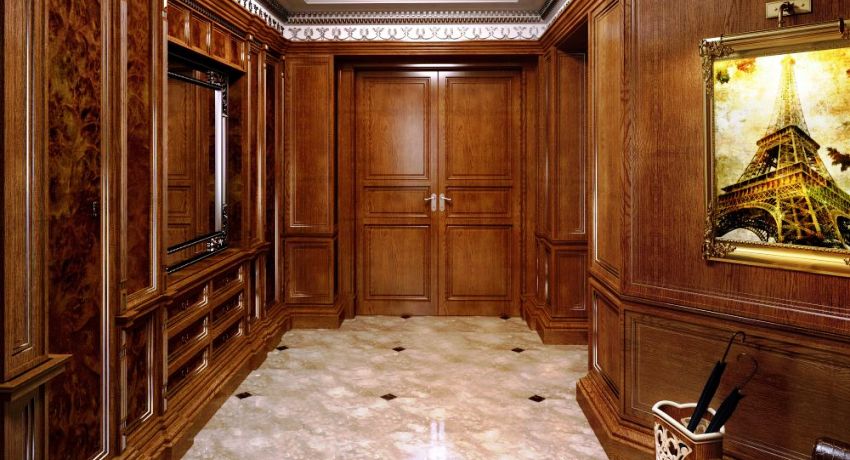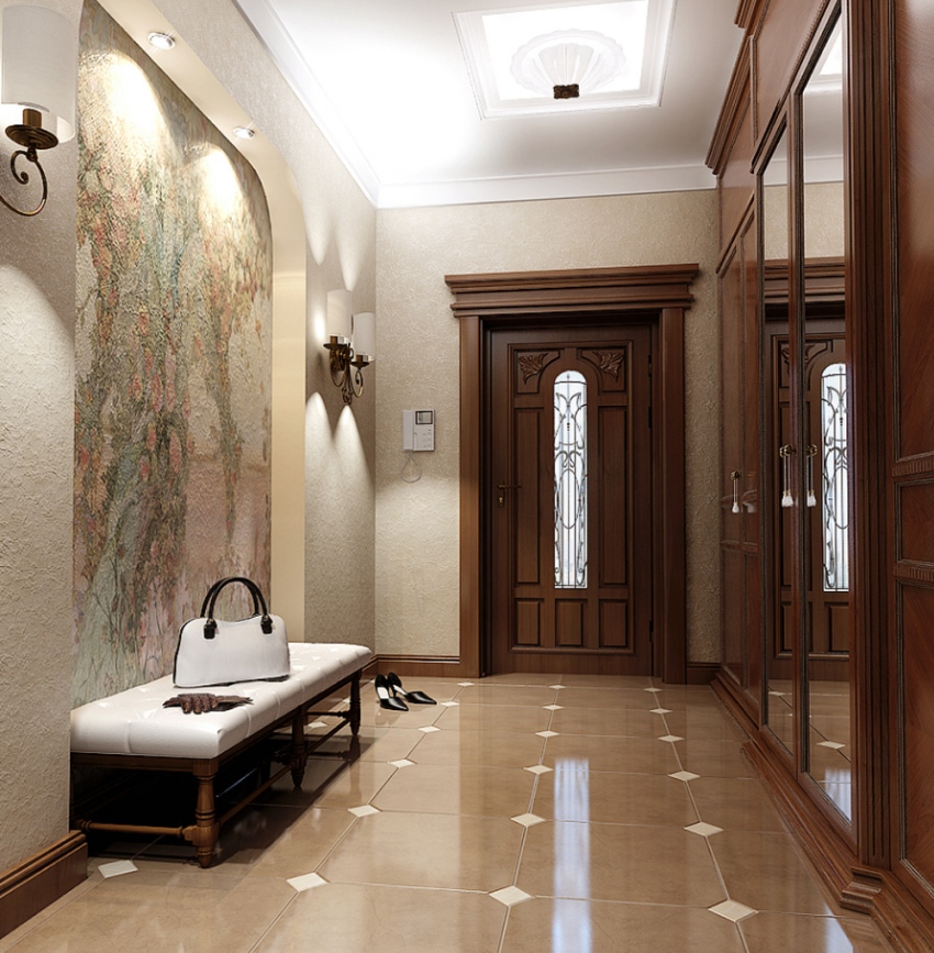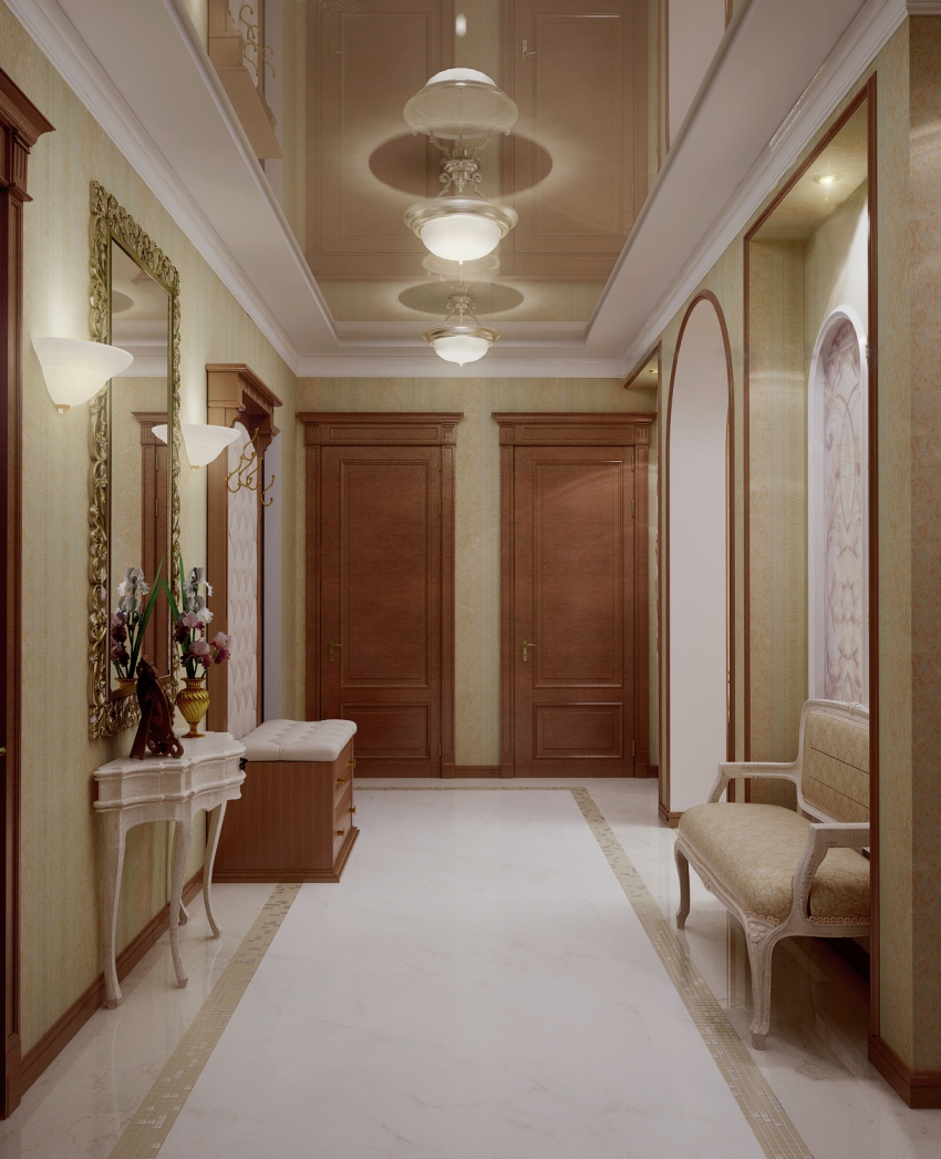 Jenis perabot di lorong: gambar dalaman dengan gaya klasik