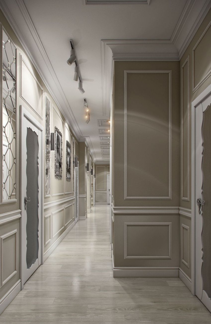 Seperti apa reka bentuk lorong dalam gaya klasik dalam foto: tafsiran moden