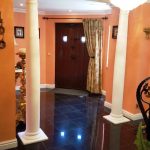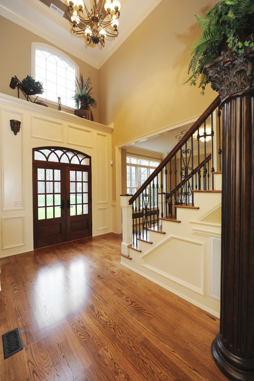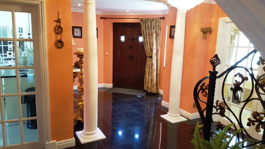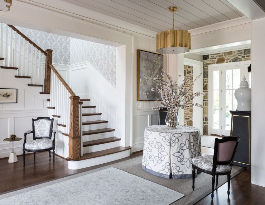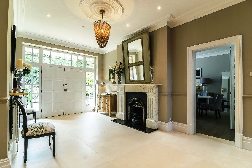 Ruang masuk yang digabungkan dengan ruang tamu adalah pilihan susun atur yang popular untuk rumah besar