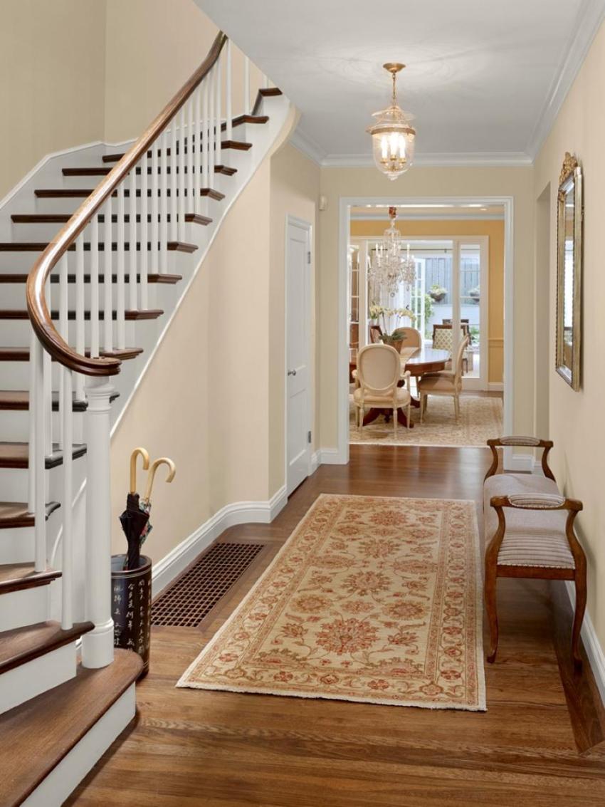 Perkara utama di bahagian dalam klasik bukanlah untuk melengkapkan lorong dengan perabot yang berlebihan.