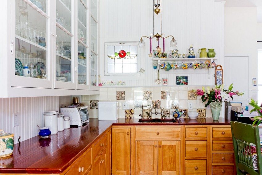Selalunya, tanah liat atau jubin yang diperluas digunakan untuk menghias dapur. Walau bagaimanapun, memasang bahan-bahan ini memerlukan pengetahuan dan kemahiran khas, jadi semakin kerap anda dapati di foto yang menamatkan dapur dengan panel PVC. Oleh kerana reka bentuk khas lamela, pemasangan dinding di kawasan apron dilakukan dengan jurang minimum.