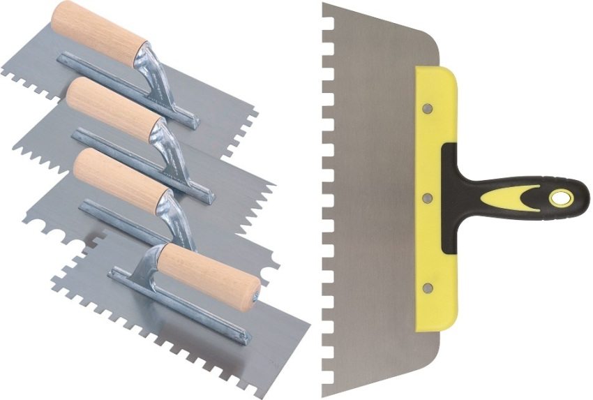 Selepas itu, mereka mula mencairkan gam dan meletakkan jubin. Jisim gam diaplikasikan ke permukaan yang disiapkan dengan spatula sederhana, dan kemudian diregangkan ke permukaan dengan lekapan khas. Kawasan di mana campuran digunakan mestilah sedemikian sehingga lapisannya tidak memakan masa lebih dari 10-15 minit.