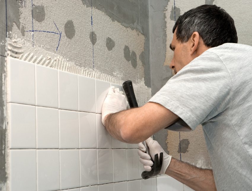Pangkalan mesti disediakan dengan teliti sebelum meletakkan jubin. Lubang dalam disembunyikan di bawah lapisan plaster, kemudian seluruh permukaan disusun. Di bilik dengan kelembapan tinggi, dinding dan lantai dirawat terlebih dahulu dengan sebatian antiseptik dan penghilang kelembapan.