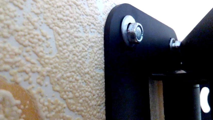Di sudut yang akan dilekatkan terus ke dinding, anda boleh membuat lubang dengan sewenang-wenangnya. Untuk memasang pemasangan TV do-it-yourself di dinding konkrit, anda boleh menghadkan diri anda hanya pada dua lubang. Sekiranya asasnya lebih lemah, anda perlu menambah bilangan titik lekapan.
