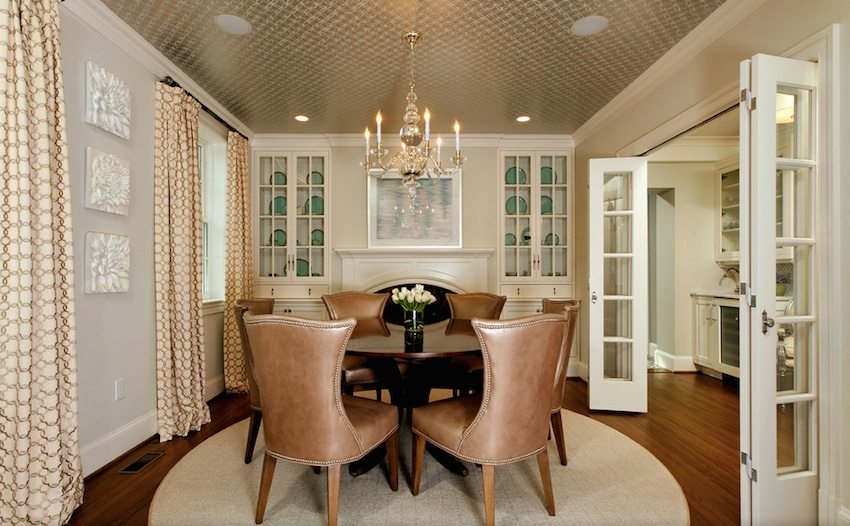- Sisipan cermin. Warna utama cermin adalah grafit, perak dan gangsa. Bahan ini sesuai dengan bahagian dalam mana pun, memperluas ruang secara visual.