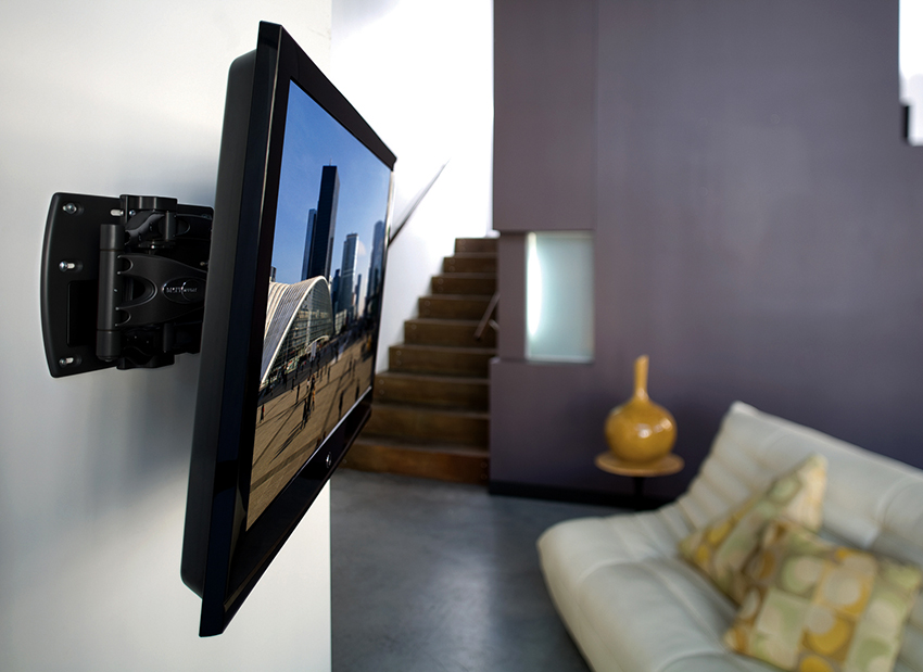 Lokasi pemasangan ditentukan berdasarkan lokasi perabot. TV paling kerap dipasang di dinding yang bertentangan dengan sofa, sofa atau kerusi berlengan. Sekiranya terdapat beberapa tingkap di dalam bilik, TV diletakkan di permukaan kosong. Sekiranya anda menggantungnya di antara bukaan tingkap, ia akan menyebabkan ketidakselesaan, kerana silau cahaya akan terpantul di dalamnya.