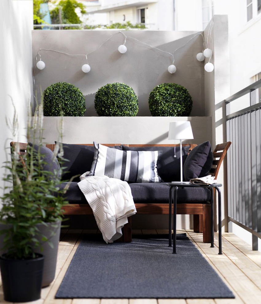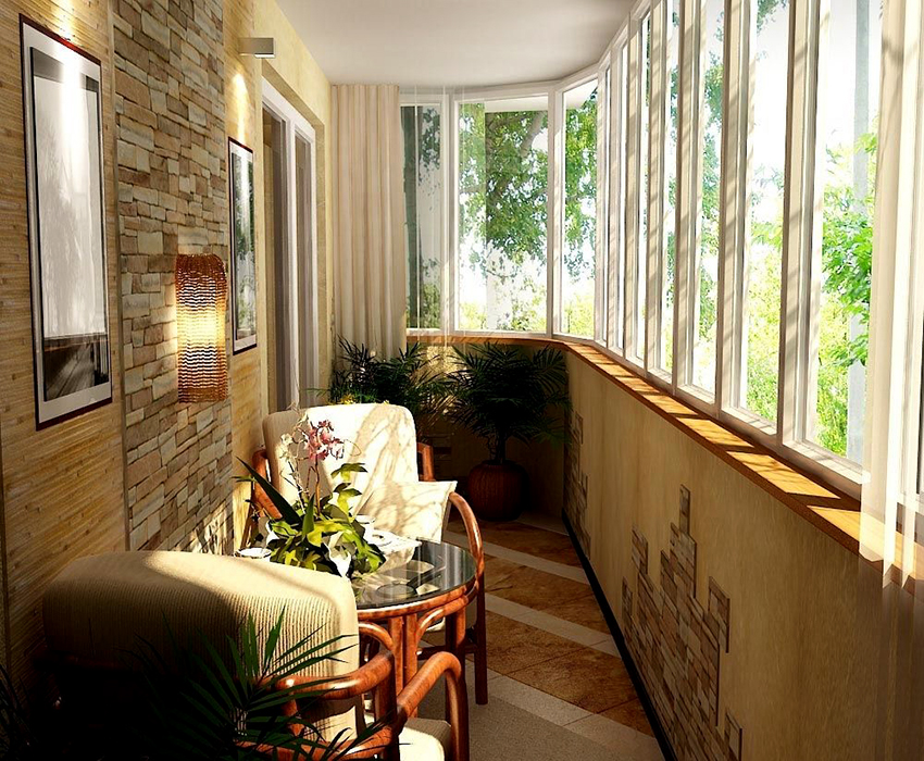 Pilihan pilihan hiasan dalaman bergantung pada kehendak individu pemilik dan tujuan fungsian premis. Semakin lama, pemilik pangsapuri menjauhkan diri dari penggunaan balkoni secara dangkal sebagai penyimpanan barang-barang yang tidak perlu, lebih memilih pilihan yang lebih canggih. Pada dasarnya, ruang ini dilengkapi untuk menghabiskan malam di sebuah syarikat yang menyenangkan.