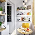 Kawasan dapur dibawa keluar ke balkoni hanya dalam kasus yang jarang terjadi, dan bukan hanya kerana kesulitan yang berkaitan dengan pemindahan beberapa komunikasi, tetapi juga karena perlunya mendapatkan beberapa izin. Oleh itu, lebih kerap ruang makan disediakan di balkoni atau loggia. Untuk melakukan ini, anda hanya perlu memilih ukuran meja yang optimum, dan bahan yang memerlukan penyelenggaraan sederhana harus dilekatkan pada dinding. Pilihan reka bentuk ruang lain: