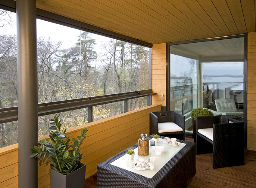 Penggunaan panel sandwic plastik dan panel aluminium: foto balkoni di dalamnya