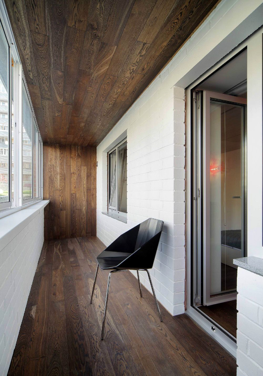 Lapisan kayu dianggap sangat hangat dan menarik.Pelbagai gambar menyelesaikan balkoni di dalam dengan kayu menunjukkan bahawa bilik yang berpakaian itu kelihatan sederhana dan selesa. Bahannya juga praktikal: ia dapat menahan pelbagai pengaruh negatif. Untuk menjadikan ruangan kelihatan kemas untuk waktu yang lama, semasa membeli, anda harus memilih papan berkualiti tinggi yang dirawat dengan campuran pemadam kebakaran, antijamur, anti-tungau dan antiseptik khas yang melindungi pokok dari kehancuran.