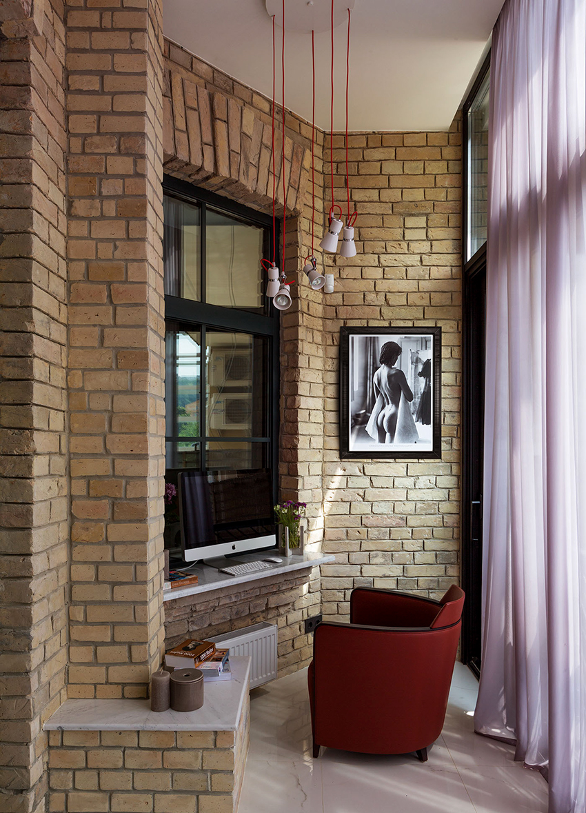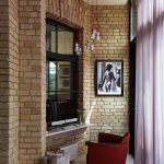 Loteng. Arah kegemaran belia moden. Dalam kes ini, hiasan balkoni di bawah bata adalah relevan, sementara anda boleh menggunakan tiruan dengan kertas dinding dan menghiasi bahagian dalam menggunakan bata klinker atau jubin seramik yang sebenar. Dalam foto reka bentuk balkoni kecil, anda sering dapat melihat bagaimana bahagian dalamnya dilengkapi dengan bantuan aksesori dan lampu asli.