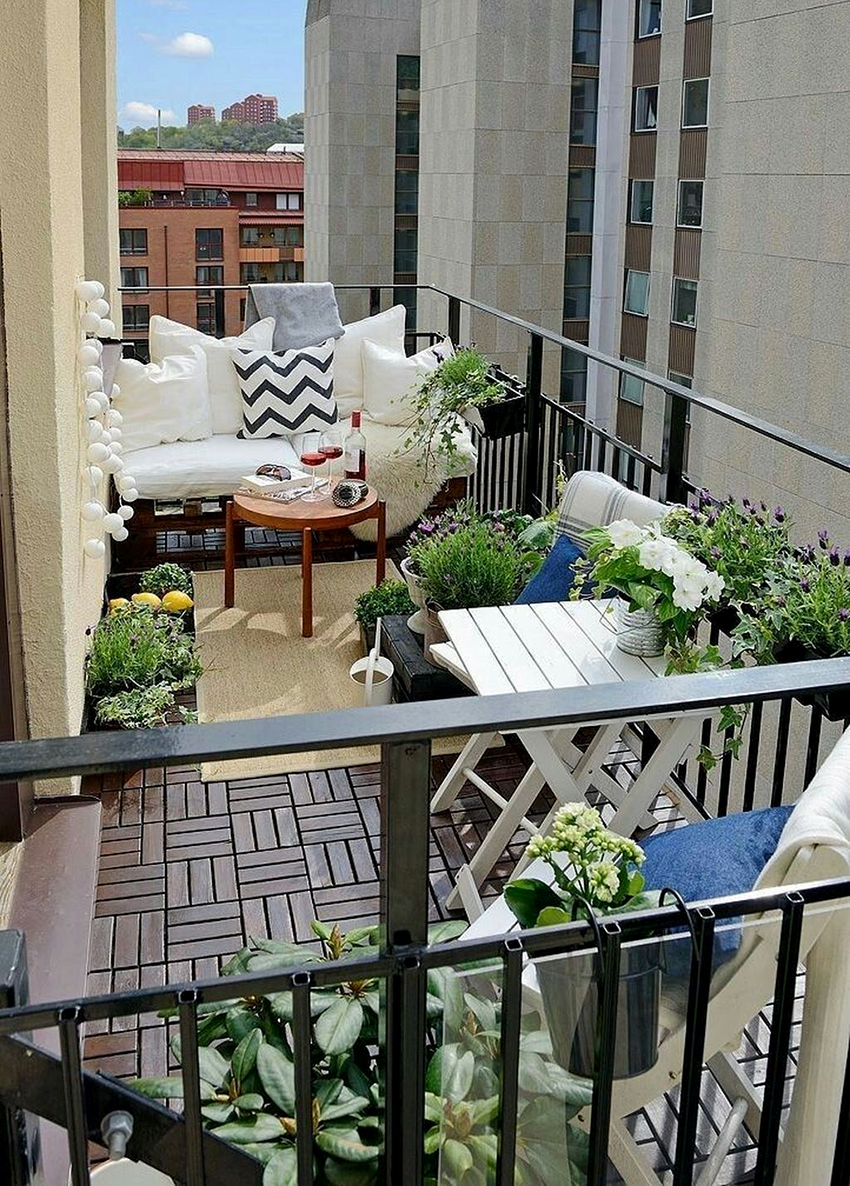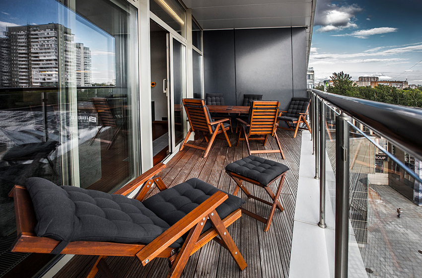 Sekiranya kawasan itu memungkinkan, balkoni boleh dijadikan zon untuk bersantai dan berkumpul dengan orang tersayang