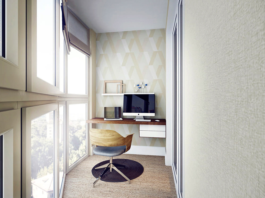 Hari ini balkoni telah menjadi bahagian tidak terpisahkan dari setiap apartmen. Bilik itu digunakan bukan hanya sebagai ruang simpanan. Sebagai contoh, orang yang lebih suka bekerja dari jarak jauh menggunakan ruang balkoni untuk membuat pejabat kecil, kerana di sana anda boleh memasang bukan sahaja meja komputer riba, tetapi juga peralatan pejabat lain.