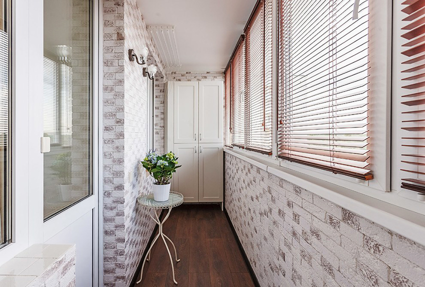 Ciri-ciri menampal dinding dengan kertas dinding: foto kemasan yang indah di dalam balkoni