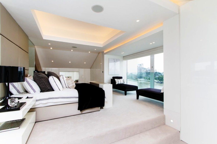 Siling plasterboard dupleks di dalam bilik tidur