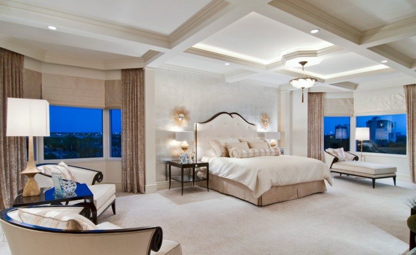 Terdapat banyak cara untuk menyelesaikan siling drywall untuk bilik tidur. Foto beberapa pilihan boleh mencadangkan idea menarik. Pilihan yang paling biasa adalah melukis dan melukis dengan cat berasaskan air. Di samping itu, siling yang digantung boleh dirancang kertas dinding cecair atau terpakai padanya plaster hiasan... Sebaiknya sapukan beberapa lapisan primer pada helaian sebelum selesai.
