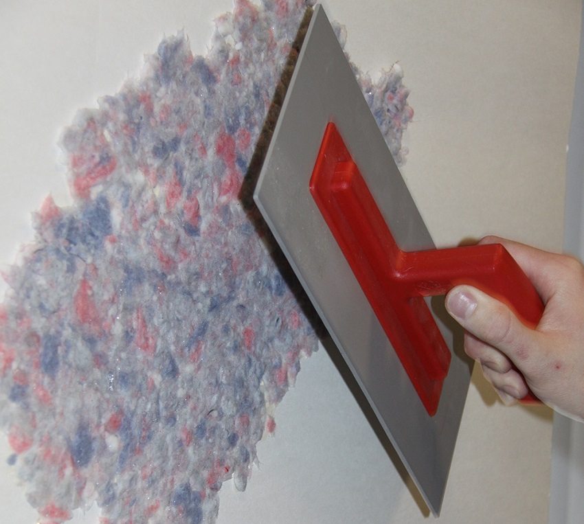 Nasihat berguna! Sekiranya dinding di mana kertas dinding cair digunakan kotor, maka tidak perlu memperbaharui lapisan sepenuhnya. Cukup untuk membasahi kawasan yang diinginkan dengan air, angkat dengan spatula dan isi kawasan ini dengan campuran yang dicairkan lagi.
