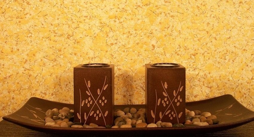 - serba boleh. Kertas dinding cecair serasi dengan hampir semua bahan: konkrit, kayu, drywall, Papan gentian, MDF, plaster, papan lapis, cat dan juga logam. Selepas aplikasi, permukaan yang lancar diperoleh, jadi tidak perlu risau tentang sendi, pemasangan, dll. Di samping itu, mereka dapat menyembunyikan penyelewengan dan kemurungan kecil;