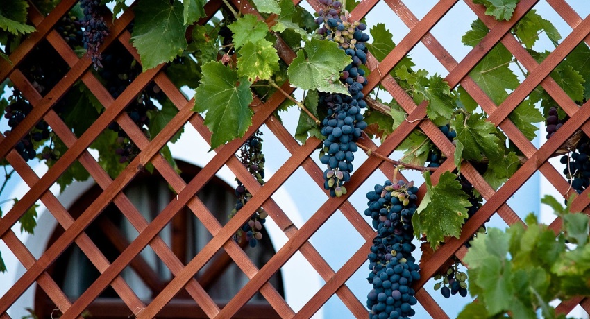 Teralis untuk anggur: kelebihan penggunaan, bahan untuk pengeluaran, jenis reka bentuk, petua, cadangan, foto dan gambar untuk dibuat dengan tangan anda sendiri.