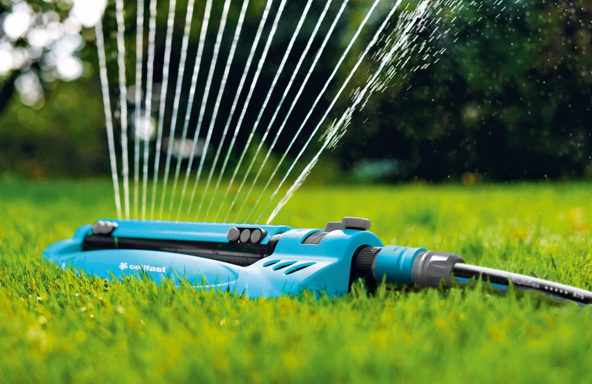 Sistem pengairan yang sama popularnya ialah sistem pengairan automatik Gardena. Set lengkap termasuk pengawal, paip polietilena dan penyiram. Sistem ini dirancang untuk pengairan kawasan seluas 380 m². Ini dilakukan berkat penyiram turbo yang dapat ditarik, di mana jajaran pengairannya diatur.