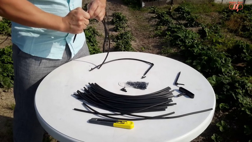 Hari ini adalah mungkin untuk membeli kit siap pakai, yang semestinya termasuk pemasa, sensor, tolok tekanan dan termometer, dan anda juga dapat melengkapkan sistem ini sendiri. Ini memerlukan saluran paip utama ¾ atau 1 inci dan selang berdinding nipis dengan lubang mini di strukturnya. Untuk tujuan ini, disarankan untuk membeli jenis elemen yang menetes. Selang diletakkan di sepanjang setiap baris tanaman di permukaan tanah. Anda juga harus menyimpan penapis mesh dan pemasa atau pengawal untuk pengairan automatik.