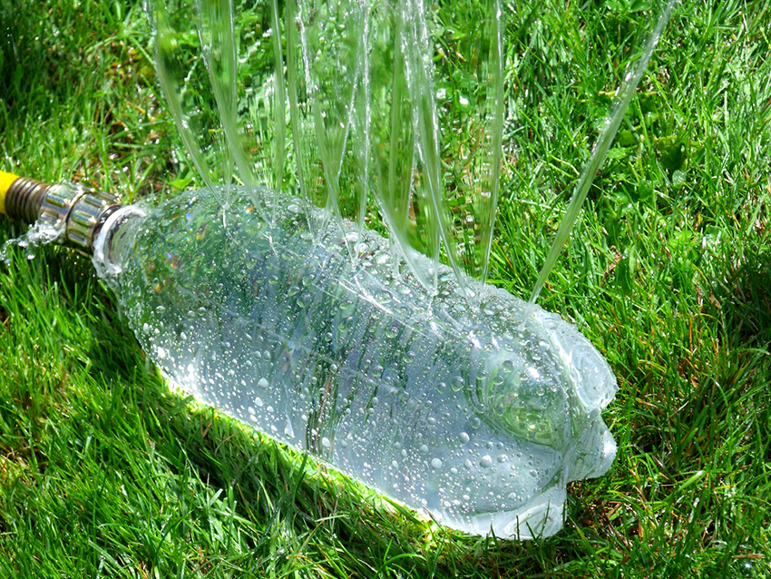 Catatan! Pilihan belanjawan adalah membeli alat penyiram siput. Anda boleh membeli produk plastik ini dengan harga 30-50 rubel sahaja.