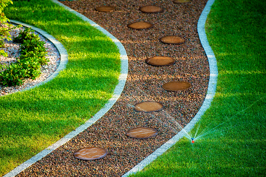 Maklumat berguna! Penting untuk diingat bahawa kebanyakan laman web menganggap adanya zon tempatan yang tidak rata. Rumput jalan pintas paling sering bersempadan dengan kawasan hijau. Dianjurkan untuk melengkapkan kawasan tersebut dengan sistem pengairan automatik, yang merangkumi pelbagai pilihan penyiram.