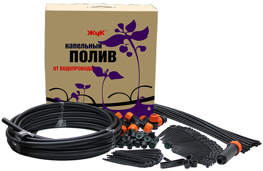 Sistem pengairan titisan Zhuk dari pengeluar domestik adalah salah satu yang paling popular di kalangan pekebun. Ia dapat dihubungkan ke bekalan air terpusat atau ke tangki simpanan. Sekiranya menggunakan pilihan yang terakhir, kit ini merangkumi tabung aras di mana anda dapat mengawal jumlah air yang tinggal di tong. Pengilang menghasilkan sistem pengairan titisan "Zhuk" untuk 60 tanaman dan 30 penanaman. Biasanya peranti ini dilengkapi dengan pemasa dan penapis. Anda juga boleh membeli pengairan tetesan Beetle untuk 20 tanaman.