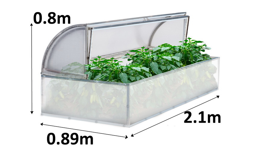 Dimensi rumah hijau seperti itu mempunyai beberapa batasan: lebar struktur di mana satu bahagian dibuka hingga 1.3 m, untuk satu sisi dua - hingga 2 m. Panjangnya, biasanya, berkisar antara 2-4 m, dan tinggi dari 0,5 hingga 1 , 5 m.